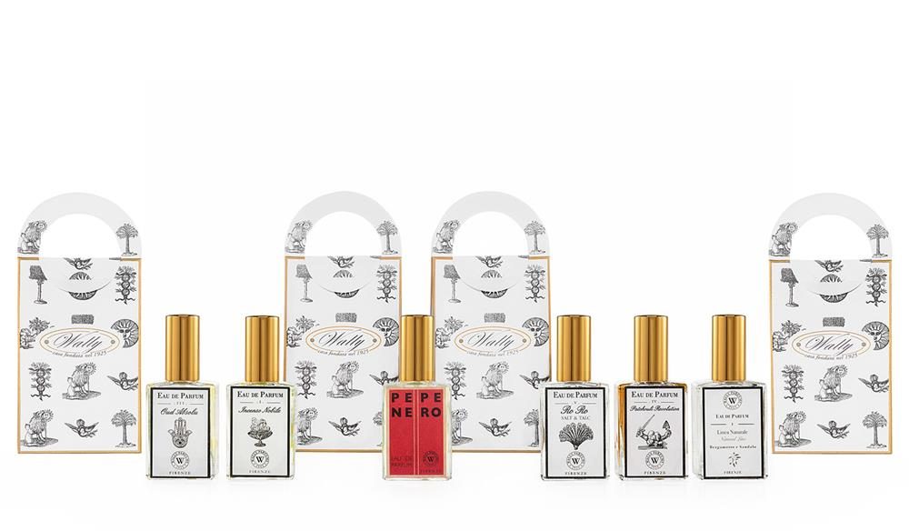 Wally heeft een collectie Eau de Parfum van de hoogste kwaliteit met verfijnde en nooit saaie geurnoten, gecreëerd volgens de beste traditie van de Toscaanse artistieke parfumerie. Elk parfum bevat meer dan 15% essence, grotendeels samengesteld uit kostbare etherische oliën van lokale planten zoals de iris, lavendel, sinaasappel, geranium, eucalyptus, basilicum, munt, peterselie, citroen, rode tijm en cipres. Deze collectie, met zijn ongewone en onderscheidende noten, wordt bijzonder gewaardeerd door een origineel en onconventioneel clientèle.